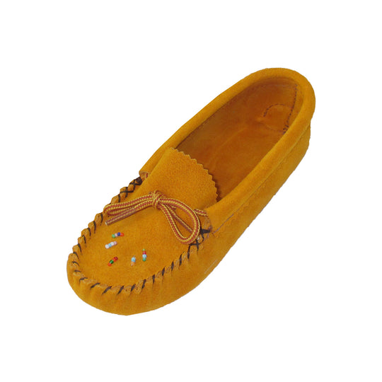 At Leather-Moccasins we have a large selection of authentic Native American kids moccasins handmade from genuine suede with many stylish accents including beading and rabbit fur trims. Our girl and boy moccasins are hand-sewn in Canada by real Native American craftsman who take pride in their work. We carry children’s moccasins for all seasons including winter moccasins with fleece or sheepskin lining. At Leather-Moccasins we have a fast 100% secure checkout and offer fast economical shipping rates. We are more than happy to answer your questions and make it easy for you to find authentic genuine suede high quality traditional Canadian handmade kids moccasins at the best price.