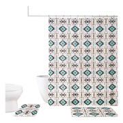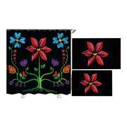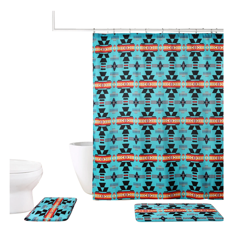 This item is being cleared, get it while supplies last. All sales are final on items marked 'final clearance'. This 15-piece set combines culture, tradition, and contemporary artistry, featuring the artwork of First Nations artist Jason Cromarty. Drawing from his Oji-Cree ancestry and membership in the Peguis First Nation, Cromarty masterfully intertwines tradition with modernity in each bold pattern. The centrepiece of this set is a luxurious shower curtain measuring 71"x71", artwork that commands attention and admiration. You'll feel softness underfoot as you step onto the plush bath mat sized 20"x32". Lastly, the smaller mat is perfect for lying in front of your toilet and measures 16"x24". This matching bath set is available in several visually stunning patterns and colours. The ensemble comprises 12 plastic shower rings, ensuring effortless installation and a secure hold for your shower curtain. Transform your bathroom into a sanctuary of beauty and heritage with this Indigenous art bathroom set!