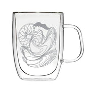 PLEASE NOTE: Mugs must be ordered in a minimum order of 6 assorted mugs. Drink your favourite beverage in style with one of these double-wall glass mugs. These exquisite mugs keep your drinks extra hot or cold for longer and add a stunning touch to your kitchen décor. Hot beverages will not burn your hands, and cold drinks will not form condensation, which means there will be no burn marks or wet rings on the table! The unique indigenous art designs and intricate details will bring joy with every sip. Each 300 ml/10 fl. oz mug comes in a specially designed box showcasing the Indigenous artists' artwork and descriptions. They stack up perfectly and are microwave-safe, allowing you to enjoy your unique beverage at the perfect temperature. Whether you're looking for a thoughtful gift or a personal treat, these double-wall glass mugs are ideal. Buy yours today! *Handwash only