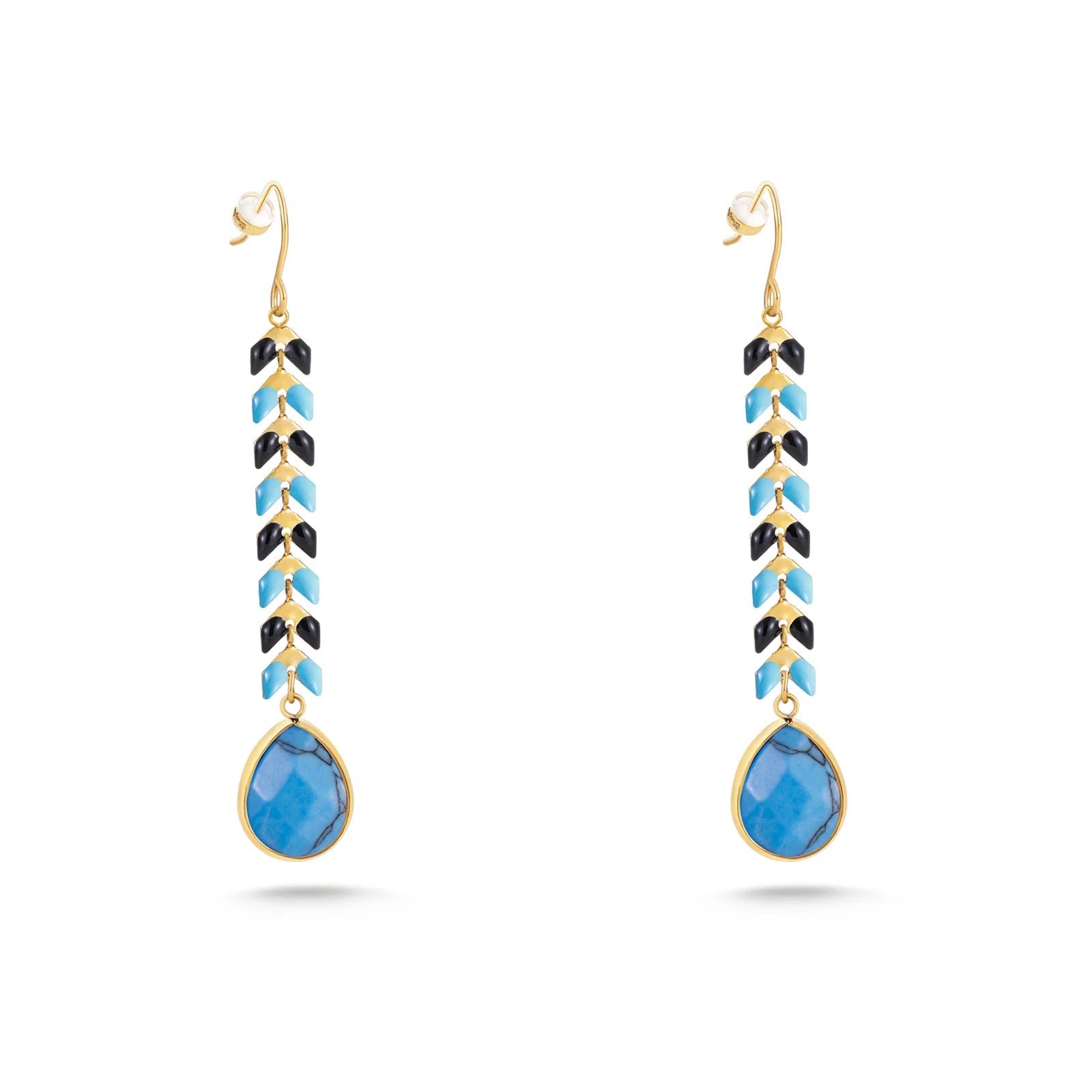 Add a touch of timeless Western elegance with these teardrop-shaped dangle earrings — a striking statement piece that's as versatile as it is beautiful. Crafted with stainless-steel hardware plated in 14k gold and finished with a glazed natural stone pendant, each earring measures approximately 2.5" by 0.5", giving you a bold yet graceful silhouette.