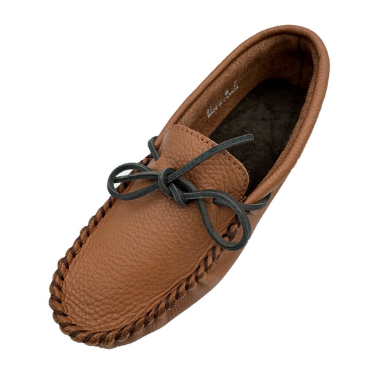 With soft sole moccasins and slippers you can enjoy a minimalist barefoot feeling while protecting your feet and keeping them warm. At Leather-Moccasins we have a large selection of soft sole moccasin house shoes and slippers. Some feature comfy cushioning in the soles while other men's styles have fleece or sheepskin lining for ultimate warmth and comfort. Our moccasins and slippers are made from quality materials such as real genuine leather, suede and sheepskin. Many of the brands we carry such as Laurentian Chief, Bastien Industries and Lambskin Specialties craft their soft sole moccasins and slippers in Canada. You will not be disappointed with these hand-crafted slippers and they will provide you with comfort for year to come!