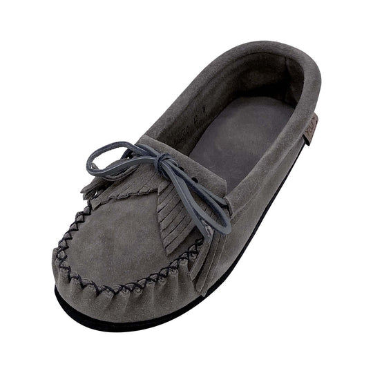 These women's moccasin shoes are a great option for casual comfort and style. At Leather-Moccasins we carry a large variety of ladies hard sole and crepe sole moccasin shoes that look great with any casual outfit. The soles are flexible and comfortable from the moment you place them on your feet. These women's moccasin shoes are made from quality and luxurious genuine leather and suede which will stretch and mold to your feet for the best fit. We carry many shades of real leather in our ladies Canadian handmade moccasin shoes from dark fudge brown to light natural tan. We also carry fleece and sheepskin lined moccasin shoes incase you prefer a rubber sole on your indoor slippers. We also have many fashionable accents such as hand-beading and fringes. Whether you plan on wearing these ladies moccasin outdoors as a casual shoe or indoors as a house shoe, you will not be disappointed and will be glad your moccasins last long and look nice for years to come!